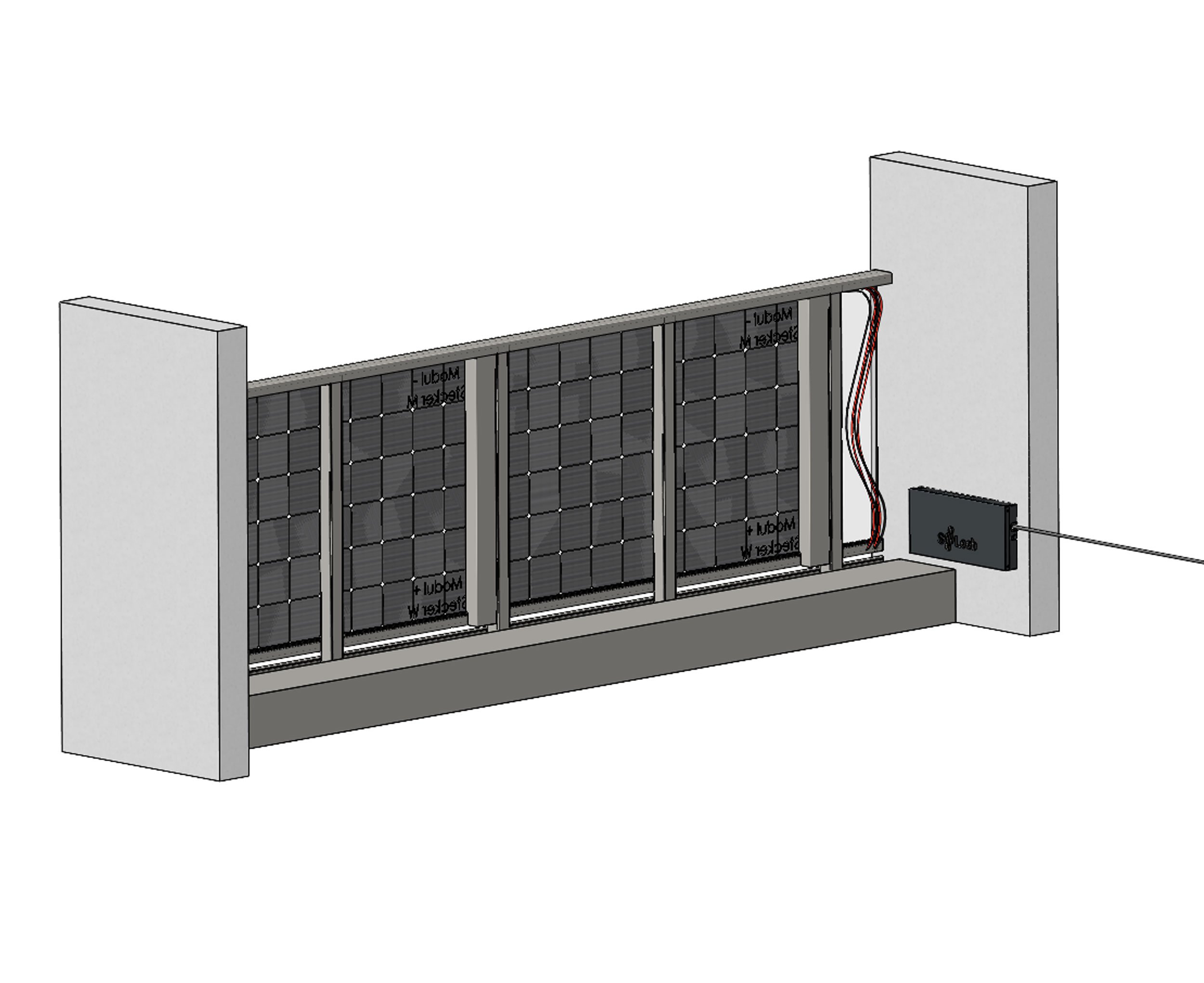 - Design completamente integrato: i moduli fotovoltaici sono installati in modo estetico e sicuro nella ringhiera in vetro (modello Alu Design Vision), il cablaggio è integrato in modo invisibile nel corrimano.