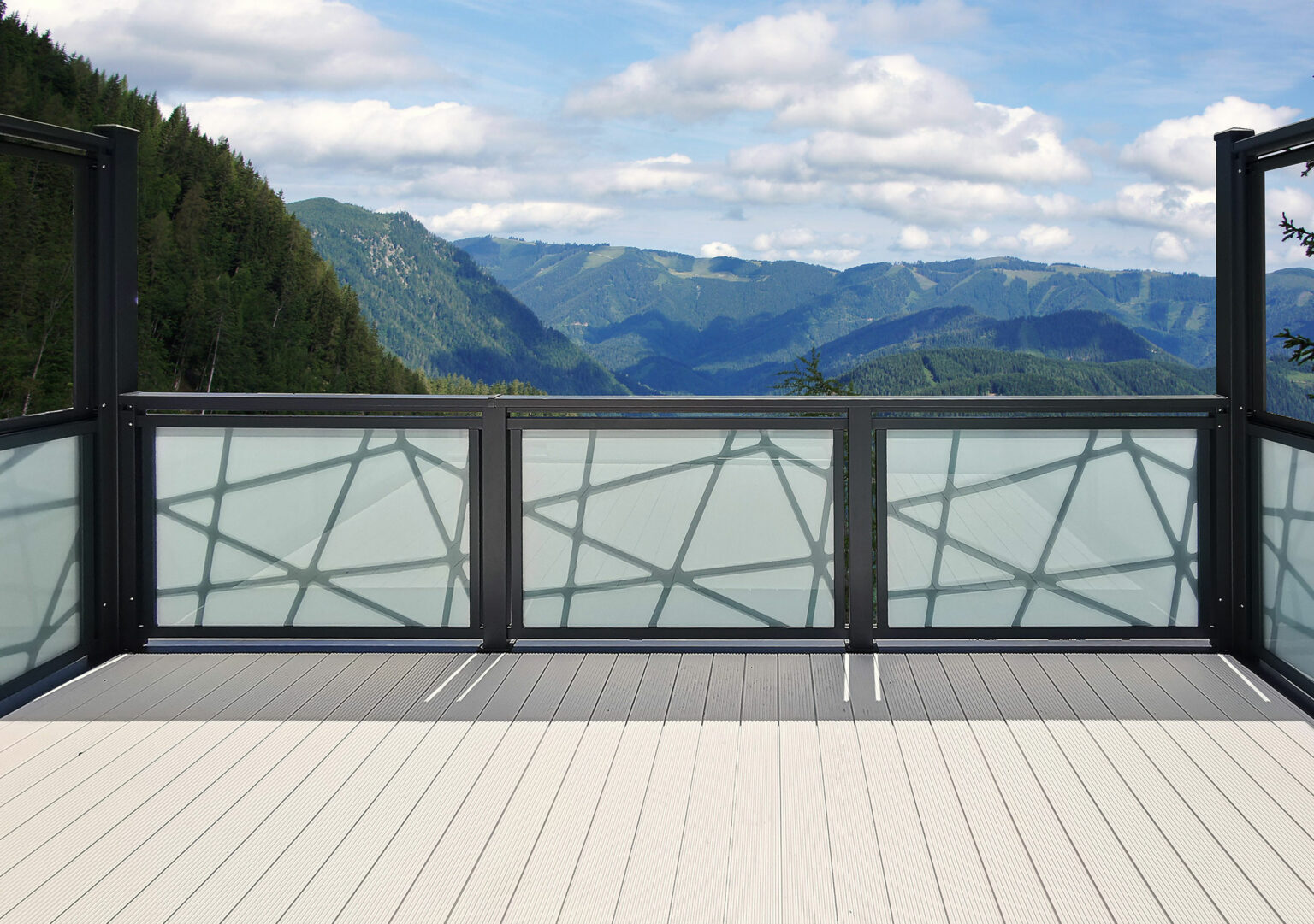 Per gli elementi dei balconi LEEB in vetro utilizziamo solo vetro stratificato di sicurezza (VSG). Una pellicola tra gli strati garantisce la resistenza agli urti e alla rottura. Ciò significa che in caso di incidenti non si corrono gravi pericoli: se anche il vetro dovesse rompersi, è impossibile che vada in frantumi.